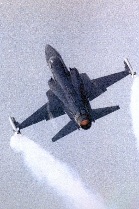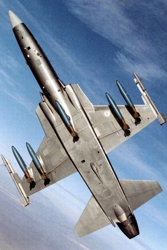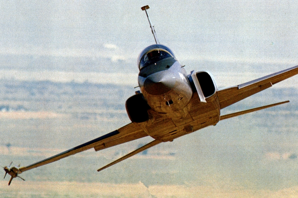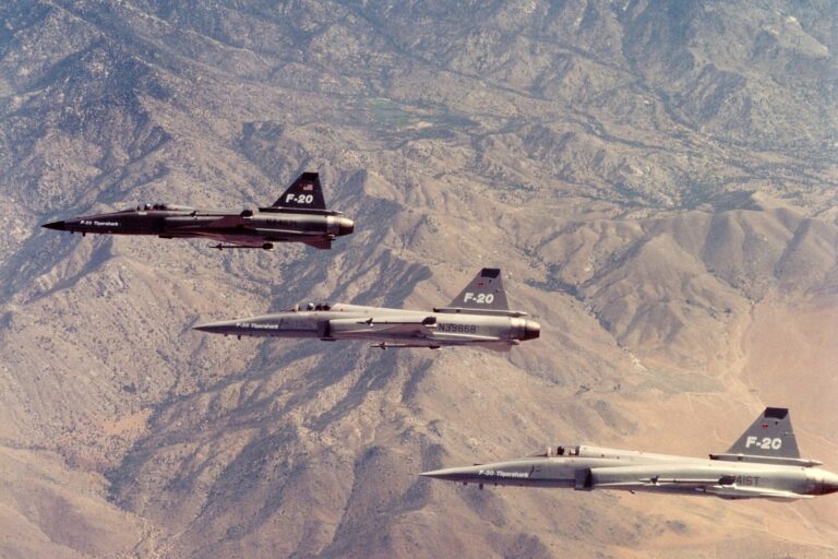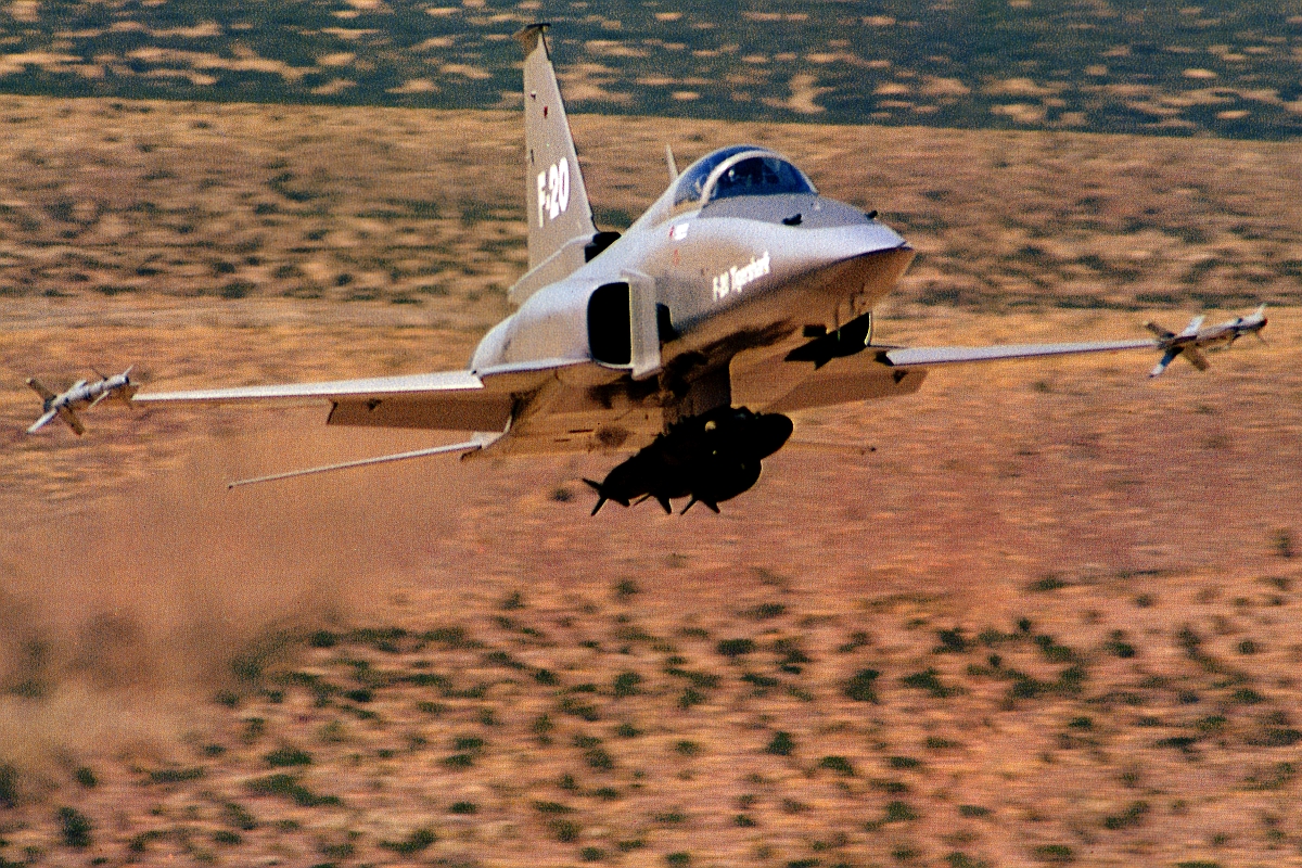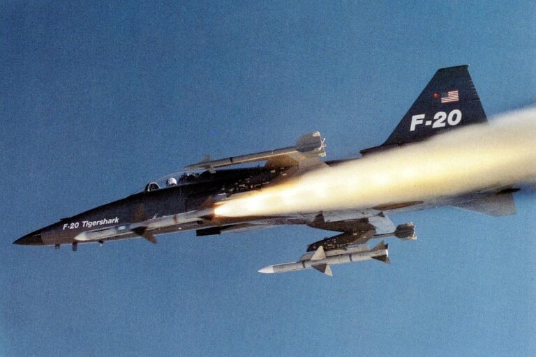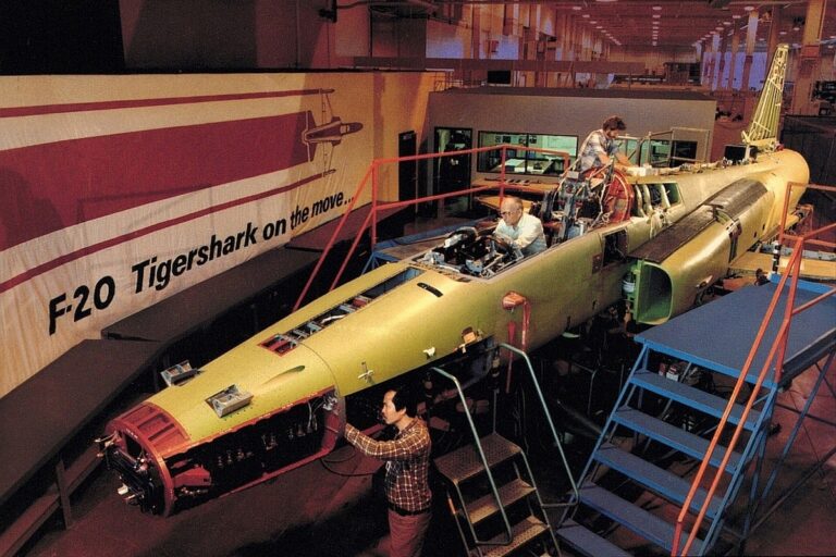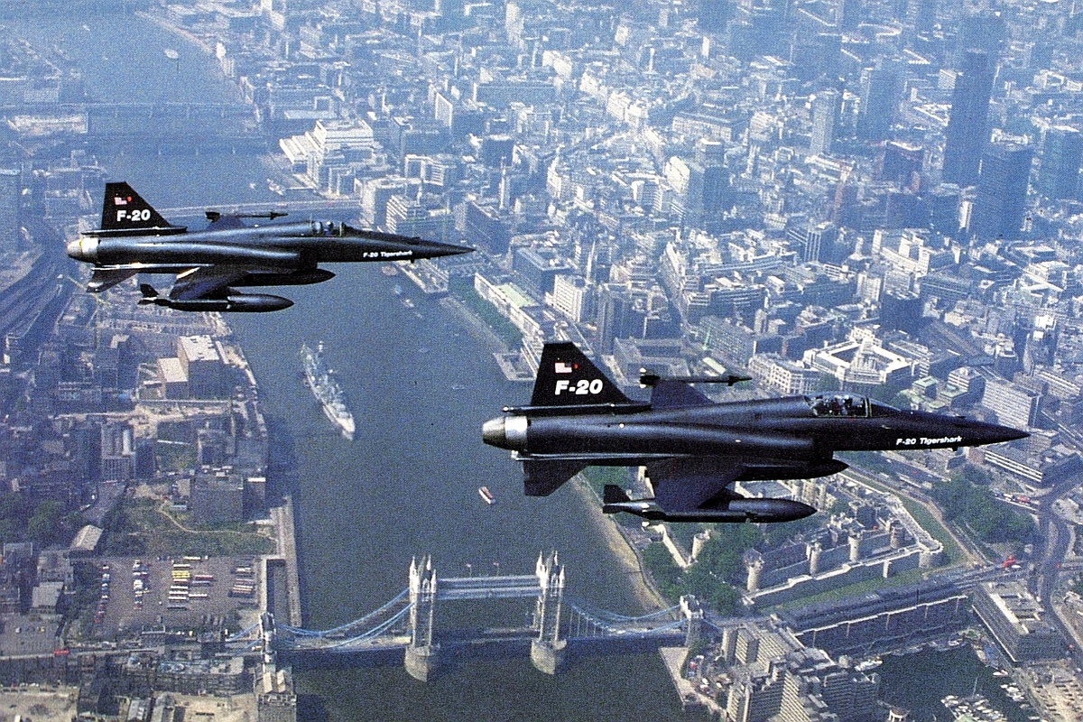 The F-20 Tigershark was an enhancement to the export fighter F-5 E/F and was initially designated as the F-5G. It featured a new single General Electric F-404 engine, modified wing, advanced radar, and fitted with a digital avionics cockpit. At the time is was compatible with other light weight fighters but at a more reasonable cost. This was considered a multi-role aircraft that could conduct air-to-air and air-to-ground missions. Development occurred between 1975 and 1986 when the program was cancelled due to changes in US international politics as it related to the sale of US built military aircraft to foreign allies. Additional information can be found on this Wikipedia page.