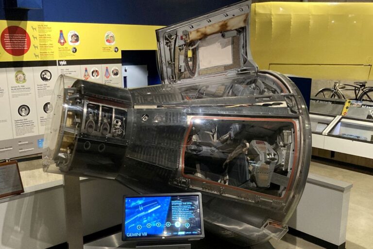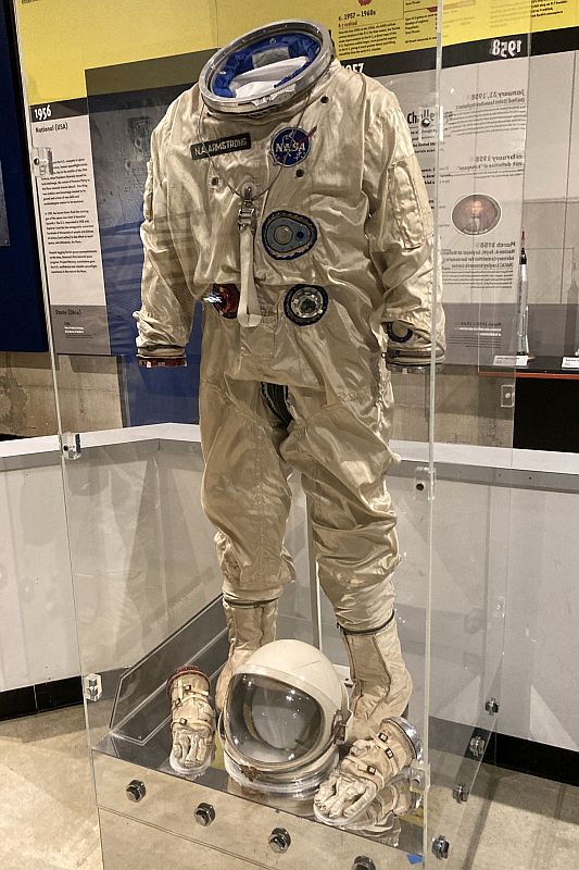 While visiting the USAF Museum in Dayton, Ohio took a side trip up to Wapakoneta, Ohio the birthplace of Neil Armstrong the first man to walk on the moon. This is the location of a museum dedicated to him with artifacts from his aviation days. Besides the Gemini VIII capsule, there was hanging on a wall the first airplane he flew. The exhibits were interesting and a much more engaging that I thought they would be.